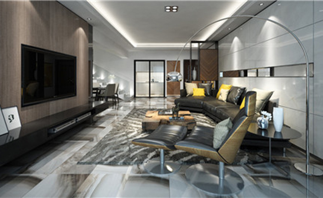 設計理念:空間中沒有多的色彩堆砌,清淺的灰和溫潤的木色是空間中的兩種主色調。客餐廳中的屏風、沙發邊幾、電視背景在色澤上一脈相承,灰色調的沉靜、素雅,反映在磚面,皮質,羊絨材質上所呈現的質感不同,前者彰顯的質樸與后者低調的時尚互揉合,將現代空間的美感重新定義,衍生出新的豐富的視覺效果。從空間區分來看,客餐廳屬開放式格局,而與書房臥室之間以溫潤的木質材料以及透明玻璃組合作為界定,賦予空間以柔和與通透之感.