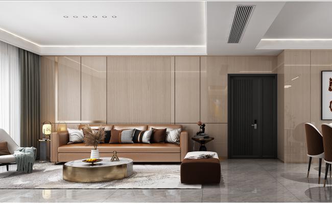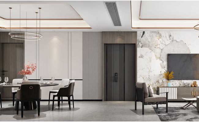 本案業(yè)主為退休養(yǎng)老住所,孫子平時(shí)有空會(huì)過(guò)來(lái)住,兒子媳婦也需要住處,業(yè)主喜歡中式又不喜歡太復(fù)雜的裝飾,最終確定新中式,需要增加家居儲(chǔ)物柜。在設(shè)計(jì)風(fēng)格上材質(zhì)選擇比較鮮明石材和硬包