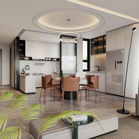 圍繞極簡,侘寂的主體氣質,為當下的二人世界、以后的三口之家打造一片廣闊溫馨的天地。 在“去風格化”的主流趨勢下,我們避開軟硬裝營造的空間,而是斟酌結構之間的比例、層次、透視、感受,增進人與家的親密關系。 低飽和度的奶茶系配上微水泥藝術漆的自然質感,再搭配上深色系的地磚,溫柔的氣息輕輕蕩漾開來。地磚下鋪設了地暖,即便在冬天也能在家中光腳行走,有種暖意直達內心。 沒有華麗的吊燈,沒有刺眼的白織燈,取而代之的是柔和舒適的暖光源,昏黃的燈光讓人卸下了疲憊,身心輕松。 整個設計遵循“沒有太多視覺思想負擔”的思路,除了低飽和度的奶茶色系,還融入了很多柔和的線條家具、原生態的材質,巧妙地將這些元素融合,營造出一個他們專屬的治愈天地。