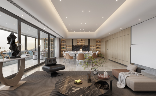 本設(shè)計(jì)以現(xiàn)代簡約為核心風(fēng)格,融合奶油風(fēng)的溫柔質(zhì)感與輕奢元素的精致細(xì)節(jié),打造客餐廚一體化的通透居住空間,兼顧美學(xué)與實(shí)用功能。