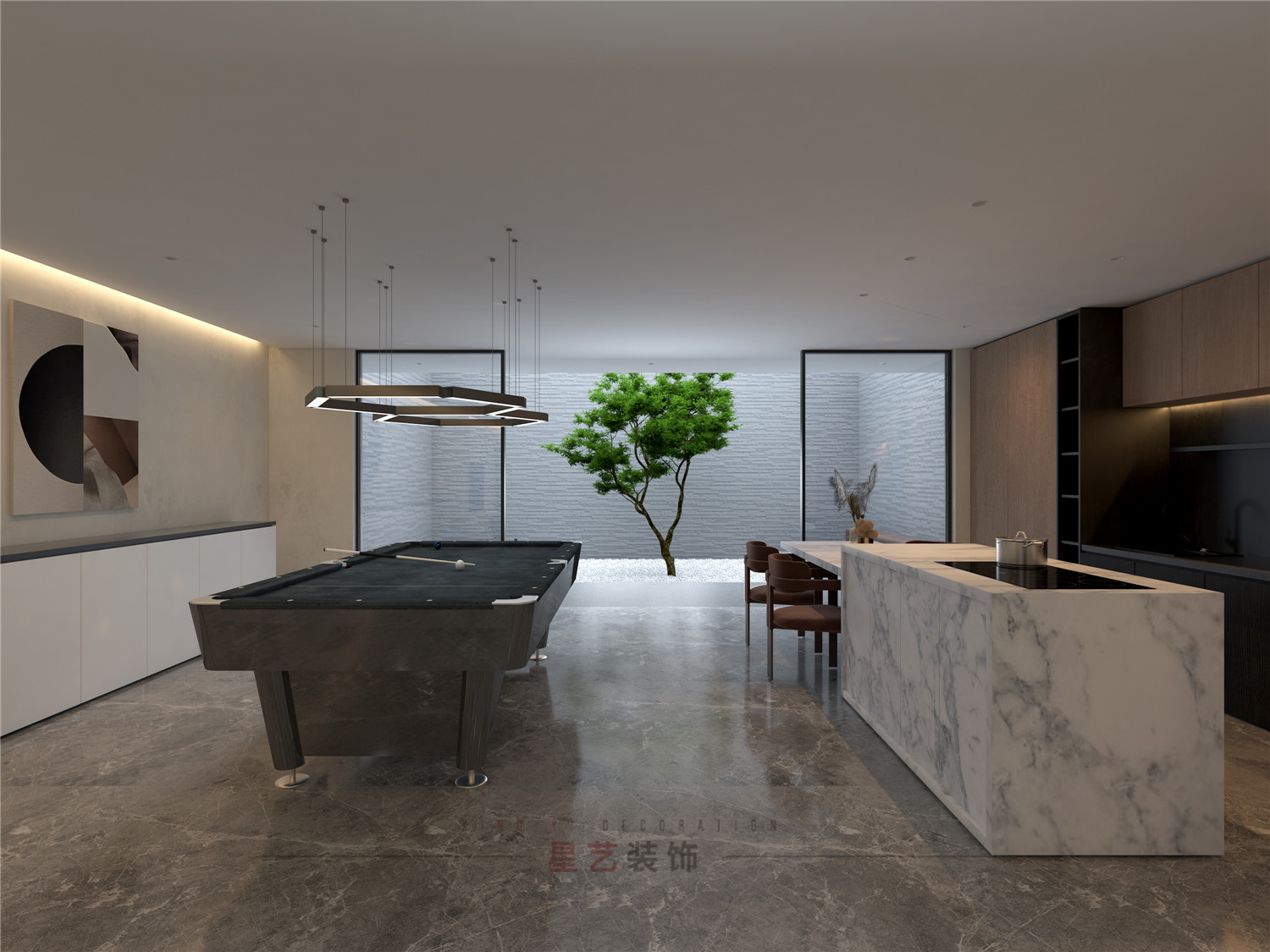休閑區設置了臺球桌與吧臺,與三五好友推杯換盞;
