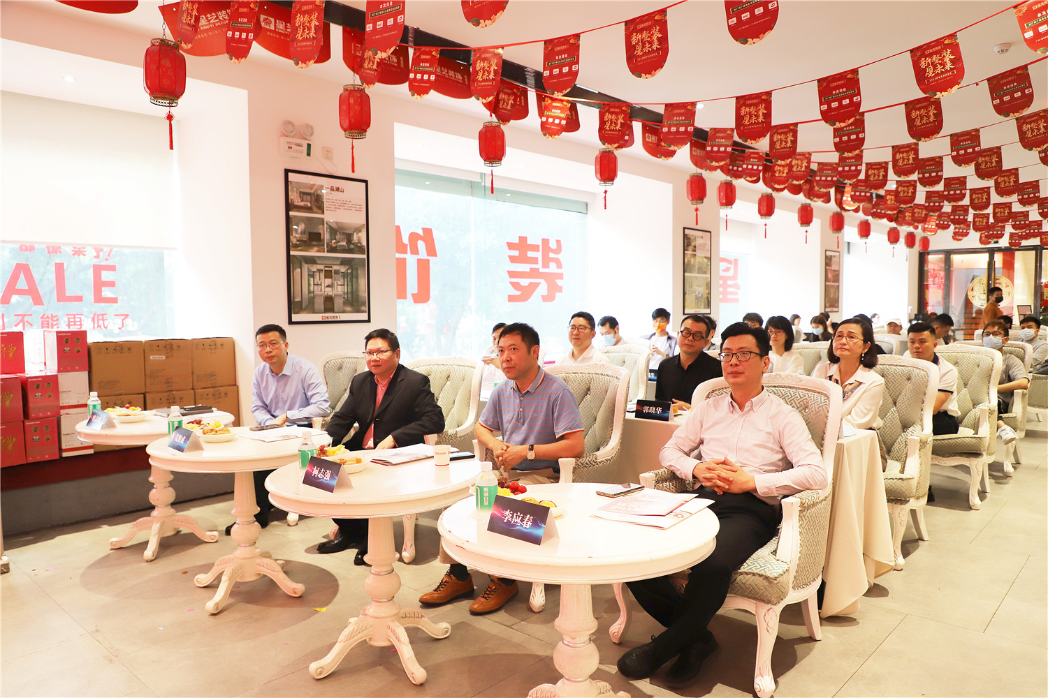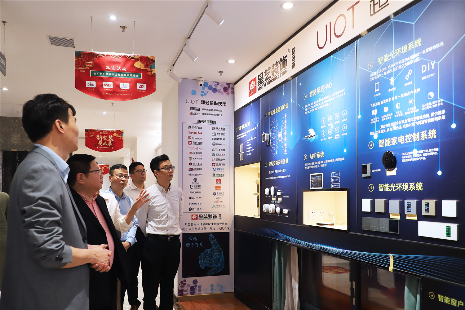 星藝裝飾廣州分公司總經(jīng)理柯志強(qiáng),副總經(jīng)理劉亦萍、總設(shè)計師郭曉華 、工程總監(jiān)汪維亮、星藝整裝館總經(jīng)理黃桃生、設(shè)計總監(jiān)江文鋒,整裝工程部經(jīng)理石峰;