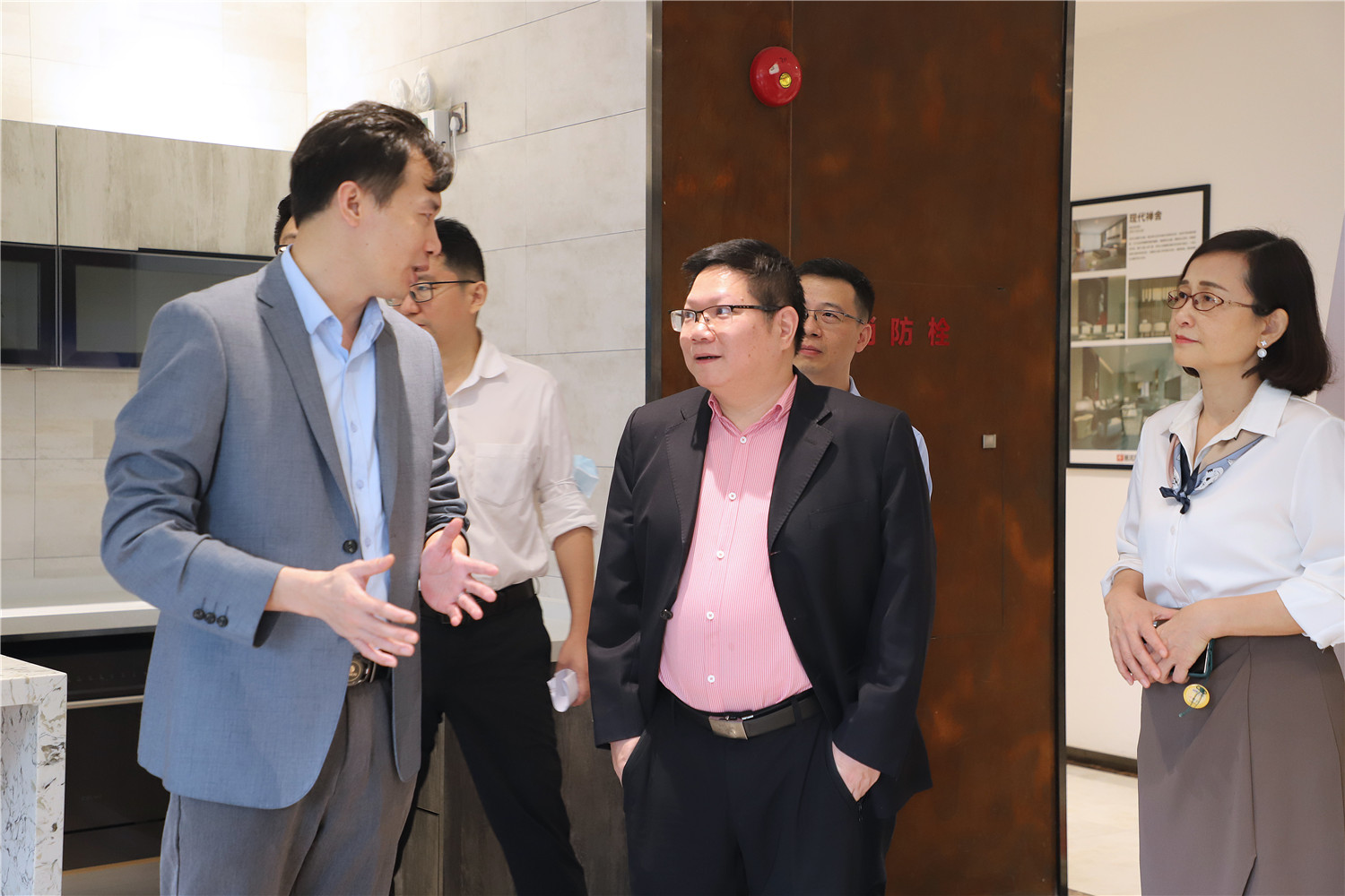 簽約儀式開始前,星藝整裝館總經(jīng)理黃桃生帶領(lǐng)中國電信公司領(lǐng)導(dǎo)一行人步入展館進(jìn)行參觀活動,并為來訪人員進(jìn)行展廳的詳細(xì)介紹。