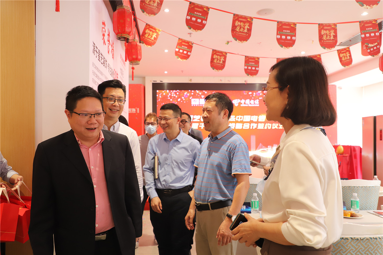 參觀過程中,中國電信領(lǐng)導(dǎo)一行人對星藝裝飾的品牌實(shí)力和服務(wù)品質(zhì)表示高度認(rèn)可及對未來協(xié)同發(fā)展的深切期許。