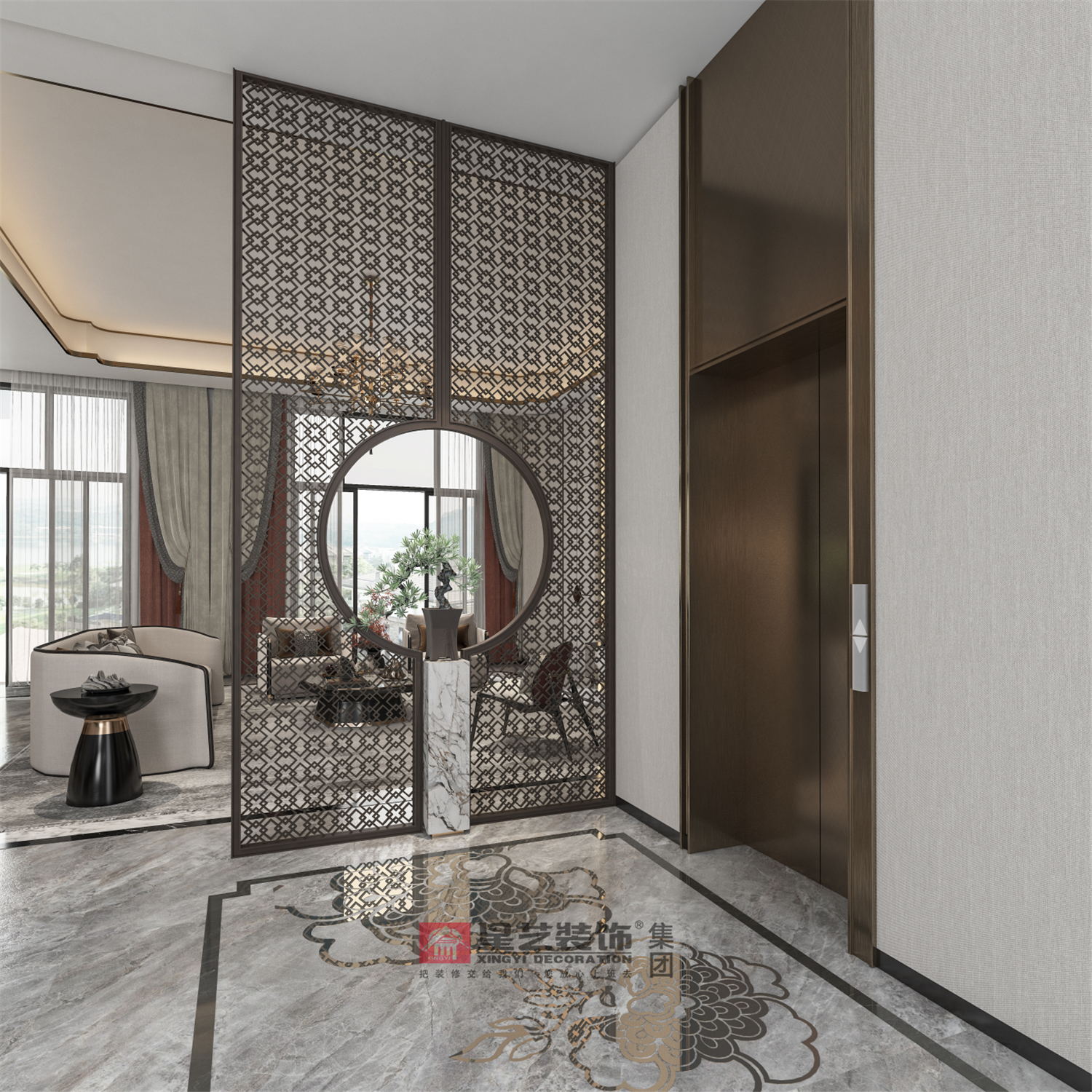 地面采用女主人喜歡的銀杏葉與祥云元素,配上隔斷屏風(fēng)隔而不斷,即起到風(fēng)水上的擋煞作用。并以石材原木與金屬為主要材質(zhì),把東方氣韻下的低調(diào)典雅呈現(xiàn)的淋漓盡致。