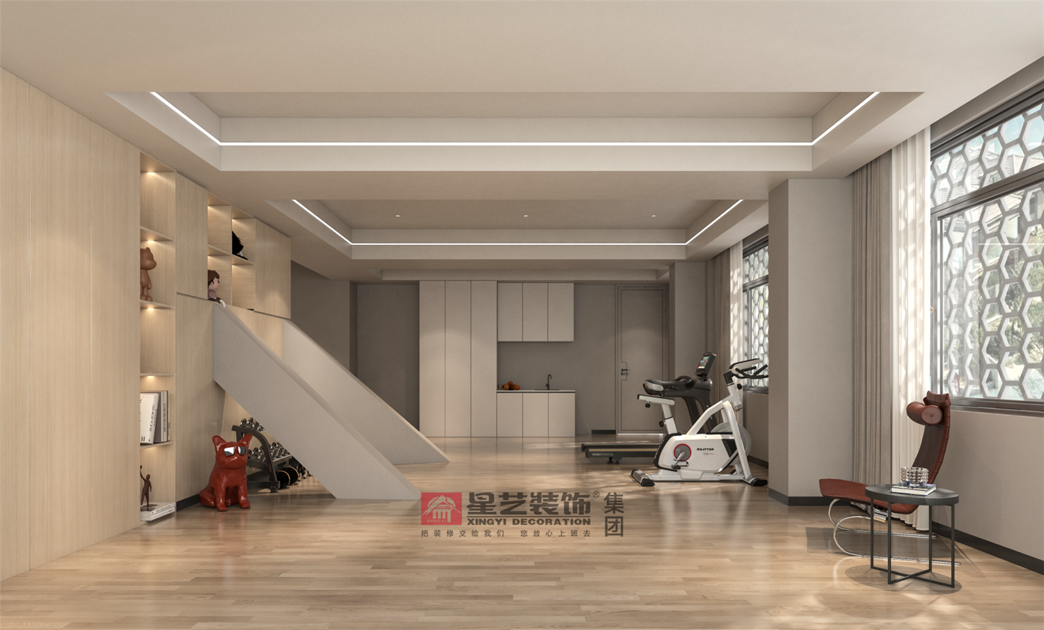 當(dāng)一股濃濃的寫意水墨氣質(zhì)注入到輕奢新中式空間中,不僅可以大大提升空間品質(zhì),讓東方韻味無限彌散;明亮的健身房配上音樂讓家人在運(yùn)動(dòng)互動(dòng)中尋得快樂。