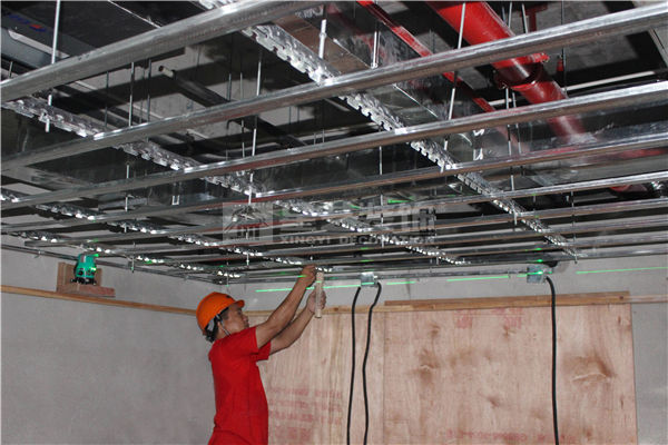 D、調整龍骨水平面。兩邊拉通線或紅外線校正,用調吊桿螺母進行調整。