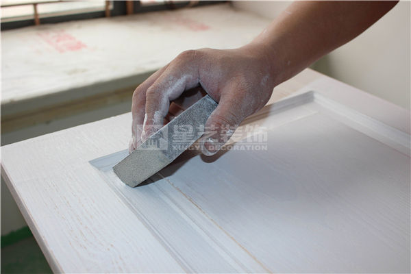 4、膩子干后用水砂紙進(jìn)行打磨。