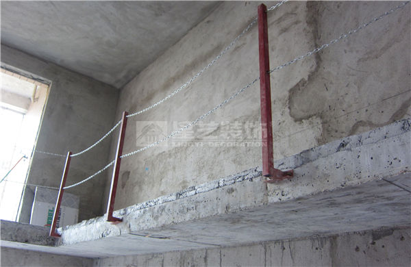 2、樓梯中空防護:樓梯口、中空口等用角鐵方通、鐵鏈進行保護,立柱高度不少于
